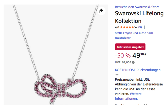 Amazon bietet aktuell den Swarovski 5723556 Lifelong Bow Anhänger für 49,38€ an, solange der Vorrat reicht.