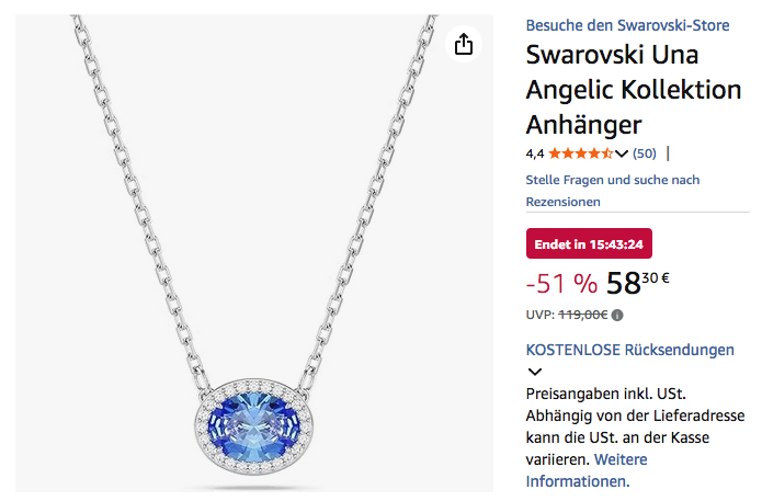 Amazon bietet aktuell die Swarowski 5671809 Constella Halskette für 58,30€ an, solange der Vorrat reicht.