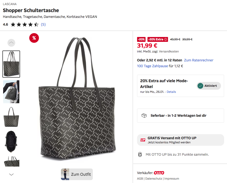 Otto.de bietet bis 26.01.2026 einen 20% Rabatt auf ausgewählte Mode-Artikel an, solange der Vorrat reicht.