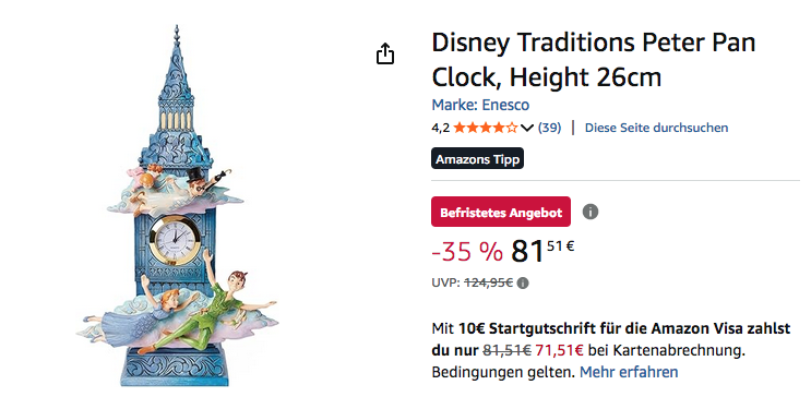 Amazon bietet aktuell die Disney Traditions "Peter Pan" Clock für 81,51 an, solange der Vorrat reicht.