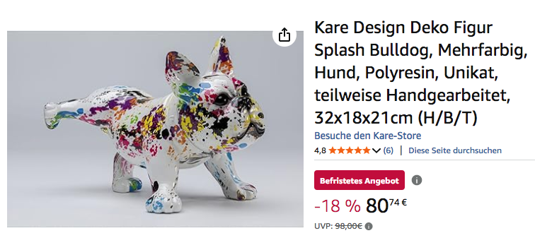 Amazon bietet aktuell die Kare Design 32 cm Deko Figur "Splash Bulldog" für 80,74€ an, solange der Vorrat reicht.