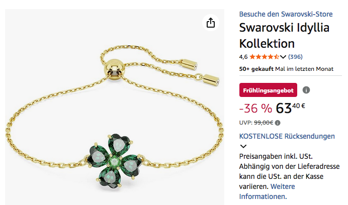Amazon bietet aktuell das Swarovski 5666585 Armband Idyllia für 63,40€ an, solange der Vorrat reicht.