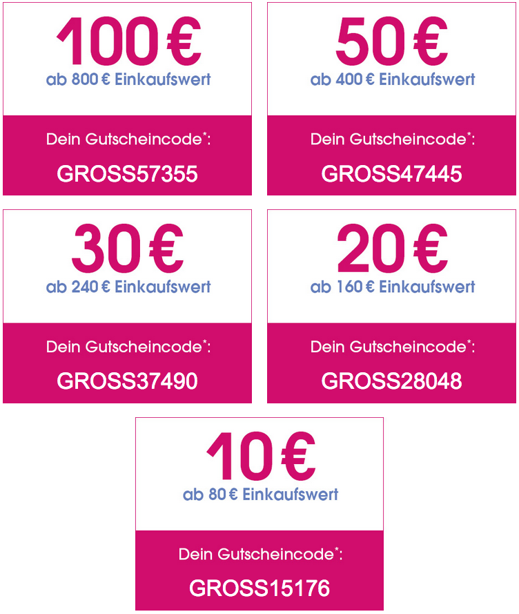 100€ mit Gutscheincode: GROSS57355 (ab 800€)