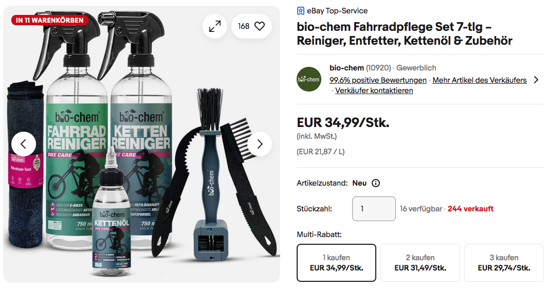 Bio-chem bietet aktuell lvii eBay das bio-chem 7-tlg. Fahrradpflege Set NEU&OVP für 34,99€ inkl. Versand an, solange der Vorrat reicht.