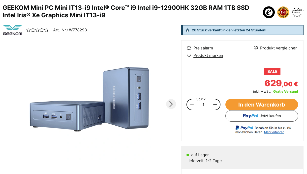 Voelkner.de bietet aktuell den GEEKOM Mini PC Mini IT13-i9 Intel® Core™ i9 Intel i9-12900HK 32GB RAM 1TB SSD für 629€ inkl. Versand an, solange der Vorrat reicht.