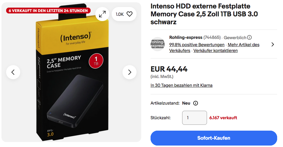 Rohling-express bietet aktuell bei eBay die Intenso 1TB HDD externe Festplatte Memory Case 2,5 Zoll in Schwarz NEU&OVP für 44,44€ inkl. Versand an, solange der Vorrat reicht.