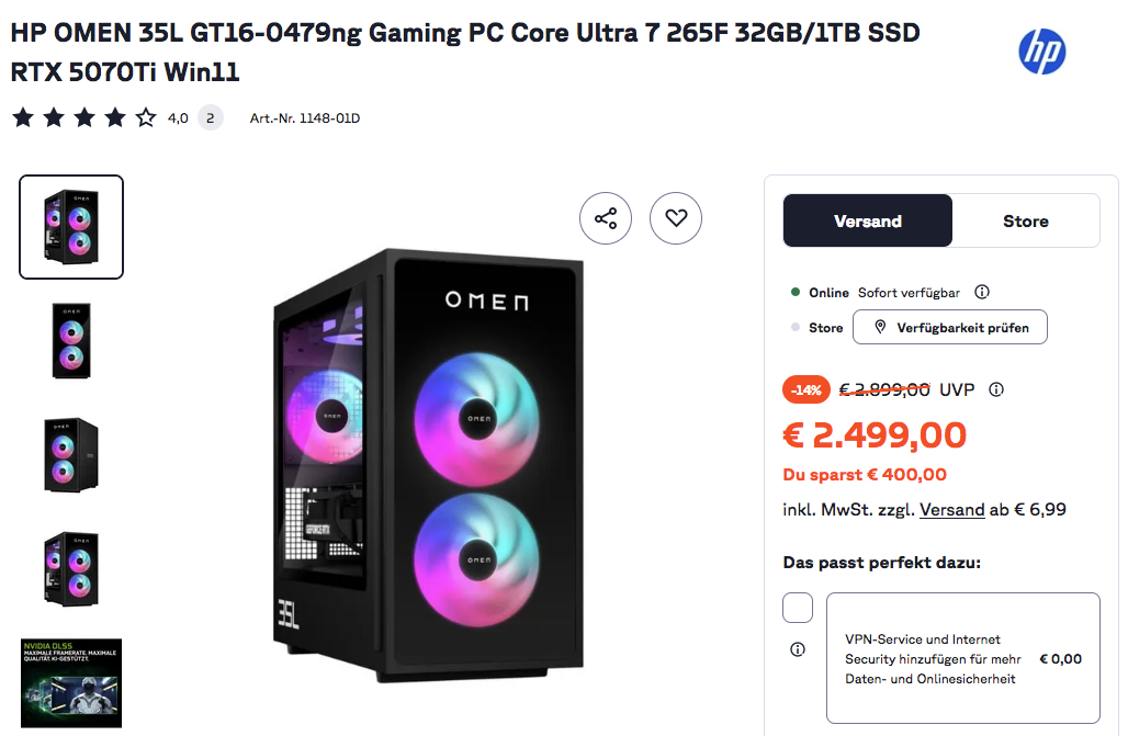 Den MSI MPG Infinite X3 AI 2NVR7-073AT Gaming PC bekommt man im Laufe dieser Aktion für 2499€ zzgl. 6,99€ Versand.