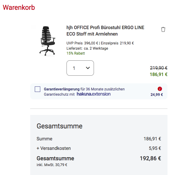 Den hjh OFFICE Profi Bürostuhl ERGO LINE ECO in Schwarz bekommt man im Laufe dieser Aktion für 186,91€ zzgl. 5,95€ Versand.