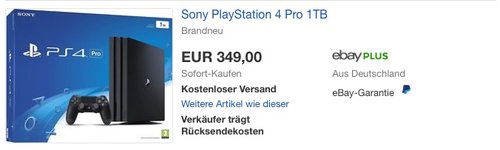 Computeruniverse bietet aktuell bei Ebay die Sony PlayStation 4 Pro 1TB NEU & OVP für 349€ inkl. Versand an. Die neue PlayStation 4 Pro ist eine lohnenswerte Anschaffung erst wenn man einen 4K-Fernseher hat, oder wenn man die schöne neue virtuelle Welt von PlayStation VR genießen möchte. 4K-Unterstützung 1 TB Festplatte & 8 GB Arbeitsspeicher Lieferumfang: 1 PlayStation 4 Pro Konsole mit 1 TB, 1 Sony DualShock 4 Wireless-Controller der 2. Generation (Original Sony), 1 Mono-Headset, 1 Netzkabel für Deutschland (CEE 7/4 Stecker F), 1 HDMI-Kabel und 1 USB-Kabel Amazon Kunden haben Sony PlayStation 4 Pro 1TB mit sehr guten 4,4 Sternen bewertet (579 Kundenrezensionen).