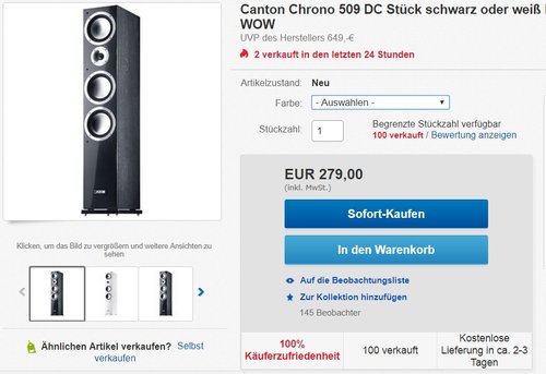 Wieder im Angebot! Dieses Topmodell der Chrono-Serie bietet sehr ausgewogen-klangliche Eigenschaften und eine schicke Optik. 3-Wege Standlautsprecher mit Nenn-/Musikbelastbarkeit von 160 / 320 Watt. Bestückung: Tieftonchassis (2x 180mm Aluminium Wave-Sicke), Mitteltonchassis(180mm Aluminium Wave-Sicke), Hochtonchassis (25mm Alu-Mangan). Die robuste und akustisch neutrale Stoffabdeckung ist auch dabei. Größe: 29 x 19 x 105 cm. Farben: Schwarz oder Weiß. 4,8 Sterne bei Amazon (120 Bewertungen).
