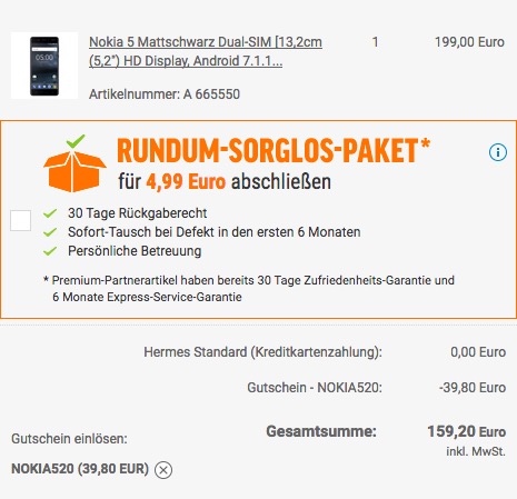 Mit dem Rabatcode: NOKIA520 20% Rabatt beim Kauf eines Nokia 5, solange der Vorrat reicht.