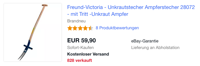225flash bietet aktuell bei eBay den Freund-Victoria 28072 - Unkrautstecher / Ampferstecher NEU&OVP für 59,90€ inkl. Versand an, solange der Vorrat reicht.