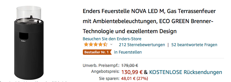 Das Enders NOVA LED M Gas Terrassenfeuer in Schwarz bekommt man im Laufe dieser Aktion für 130,99€.
