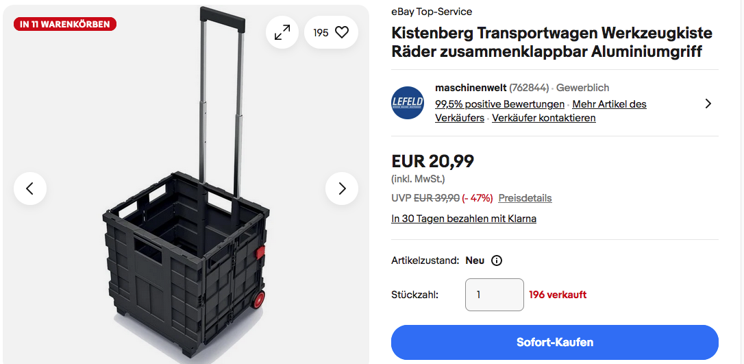 Maschinenwelt bietet aktuell bei eBay den Kistenberg KCT4040/L Transportwagen NEU&OVP für 20,99€ inkl. Versand an, solange der Vorrat reicht.