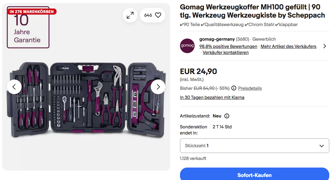 Gomag-germany bietet aktuell bei eBay den Gomag 90-tlg. Werkzeugkoffer MH100 NEU&OVP für 24,90€ an, solange der Vorrat reicht.