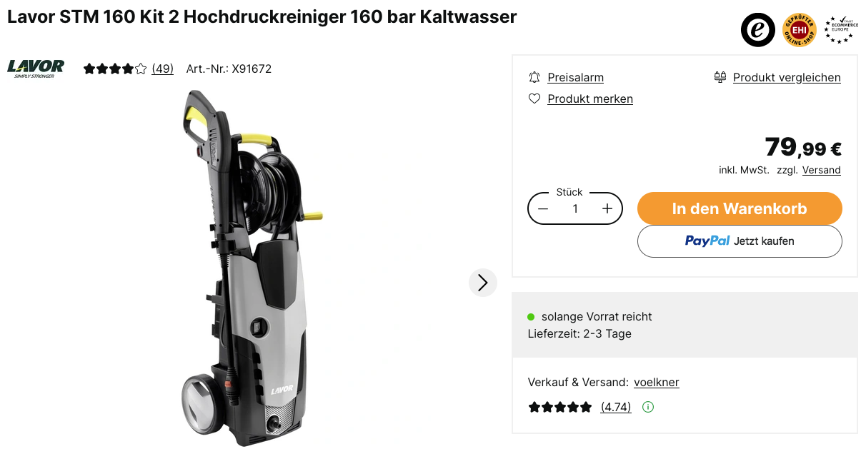 Den Lavor STM 160 Kit 2 Hochdruckreiniger 160 bar bekommt man im Laufe dieser Aktion für 79,99€ zzgl. 5,95€ Versand.
