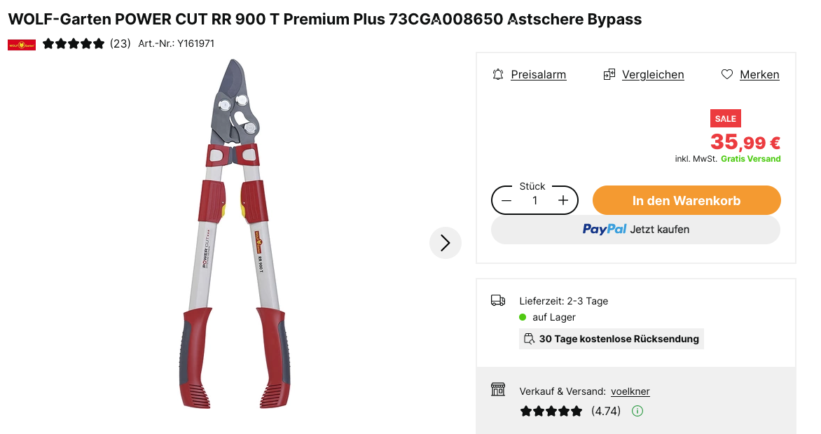 Voelkner.de bietet aktuell die WOLF-Garten POWER CUT RR 900 T Premium Plus Bypass-Astschere für 35,99€ inkl. Versand an, solange der Vorrat reicht.