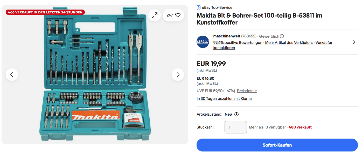 Maschinenwelt bietet aktuell bei eBay das Makita B-53811 100-tilg. Bit & Bohrer-Set NEU&OVP für 19,99€ inkl. Versand an, solange der Vorrat reicht.