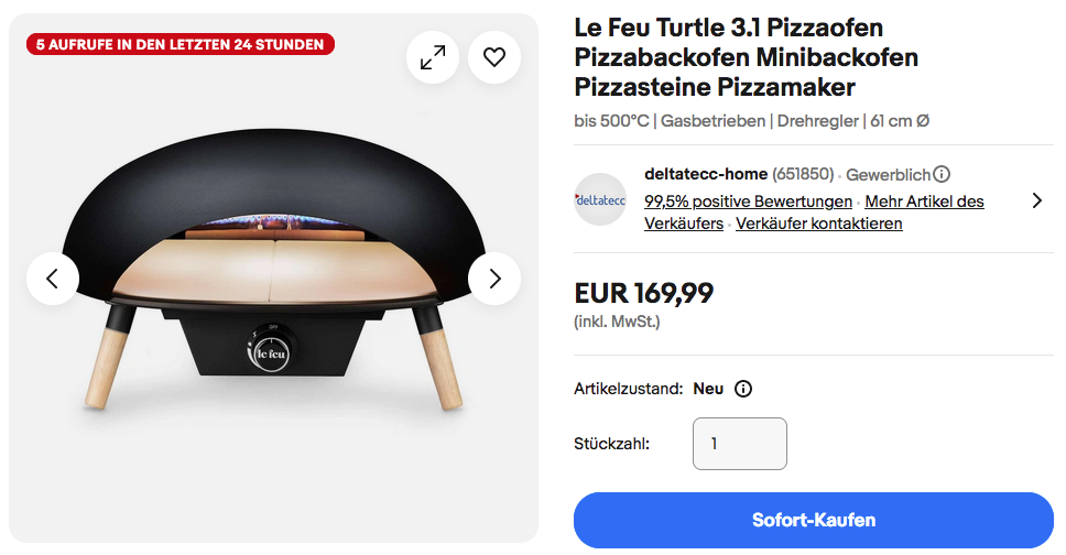 Deltatecc-home bietet aktuell bei eBay den Le Feu Gas-Pizzaofen Turtle 3.1 NEU&OVP für 169,99€ inkl. Versand an, solange der Vorrat reicht.