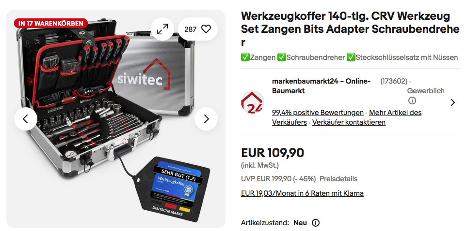 Markenbaumarkt24 – Online-Baumarkt bietet aktuell bei eBay den siwitec 15638 140-tlg. Werkzeugkoffer NEU&OVP für 109,90€ inkl. Versand an, solange der Vorrat reicht.