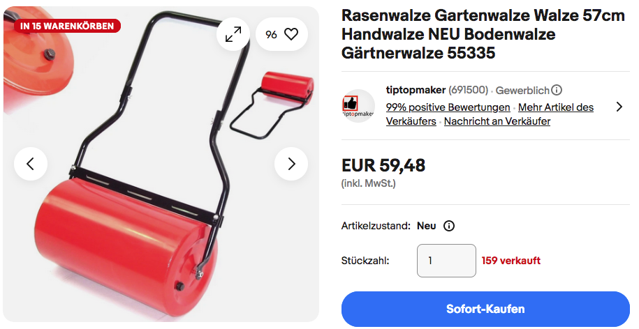 Tiptopmaker bietet aktuell bei eBay die APEX 55335 57cm Rasenwalze NEU&OVP für 59,48€ inkl. Versand an, solange der Vorrat reicht.