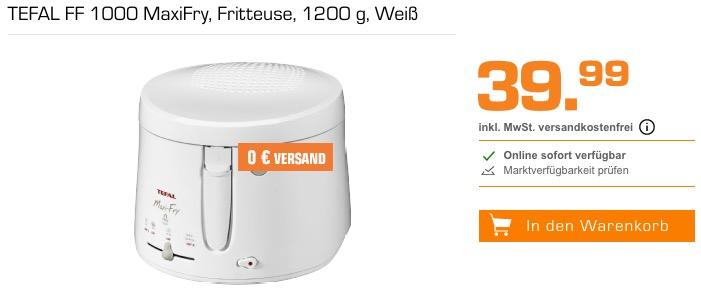 Saturn bietet bis 9.11., 9 Uhr im Laufe der Schlemmerwoche - AKTION unter anderem die TEFAL FF 1000 MaxiFry Fritteuse für 39,99€ inkl. Versand an, solange der Vorrat reicht.