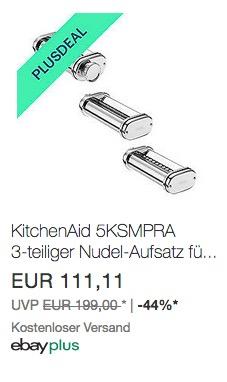 Ebay - 10% Rabatt für Plus-Mitglieder: z.B. KitchenAid 5KSMPRA 3-teiliger Nudel-Aufsatz für ARTISAN Küchenmaschinen
