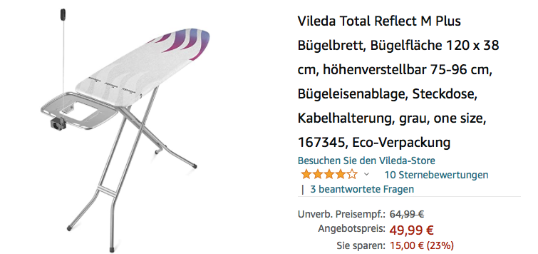 Das Vileda 167345 Total Reflect M Plus Bügelbrett bekommt man im Laufe dieser Aktion für 49,99€.
