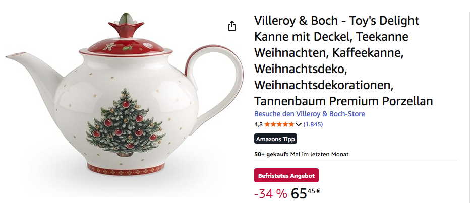Amazon bietet aktuell die Villeroy & Boch 1,6 Liter Toy's Delight Kanne Weihnachten für 65,45€ an, solange der Vorrat reicht.