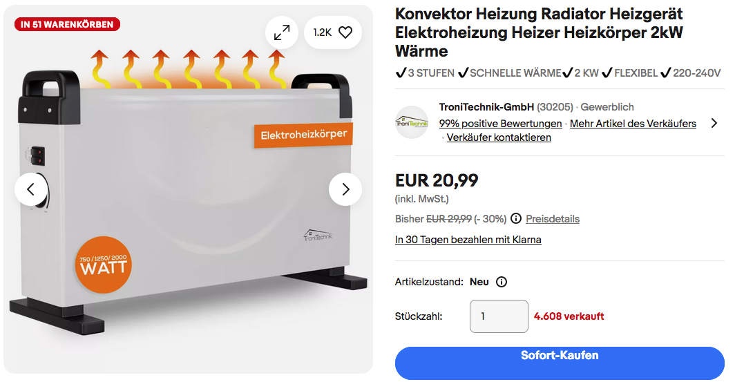 TroniTechnik-GmbH bietet aktuell bei eBay das Tronitechnik TT-KH-101 Konvektionsheizgerät NEU&OVP für 20,99€ an, solange der Vorrat reicht.