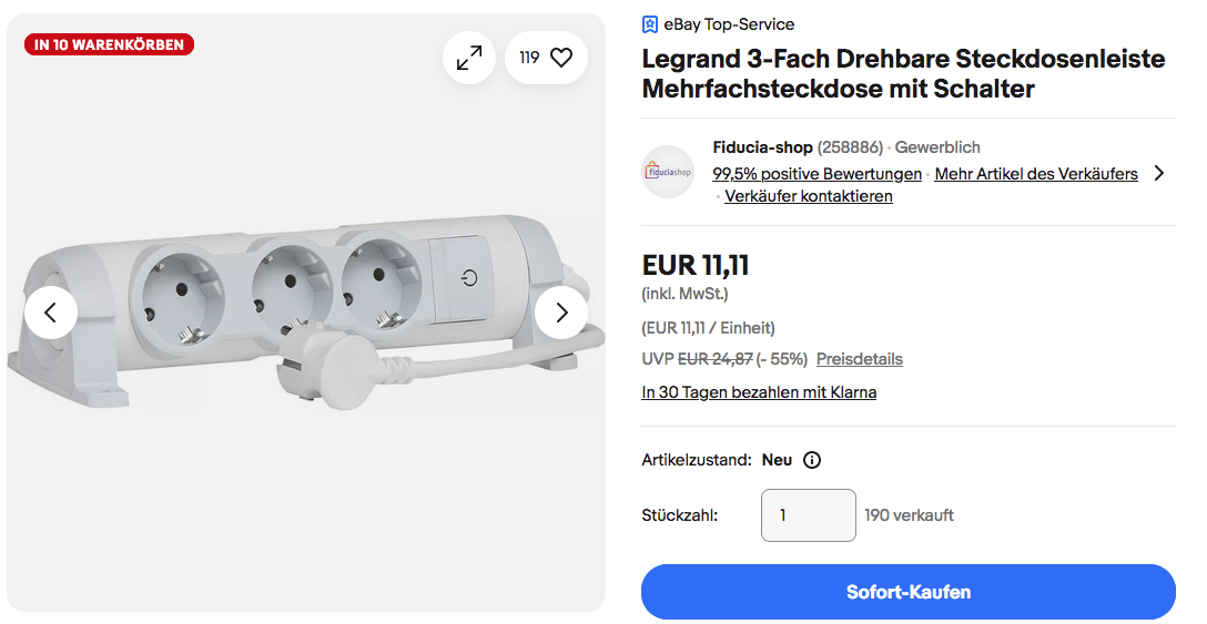 Fiducia-shop bietet aktuell bei eBay die Legrand 694621 3-Fach Drehbare Steckdosenleiste in Grau-Weiß NEU&OVP für 11,11€ inkl. Versand an, solange der Vorrat reicht.
