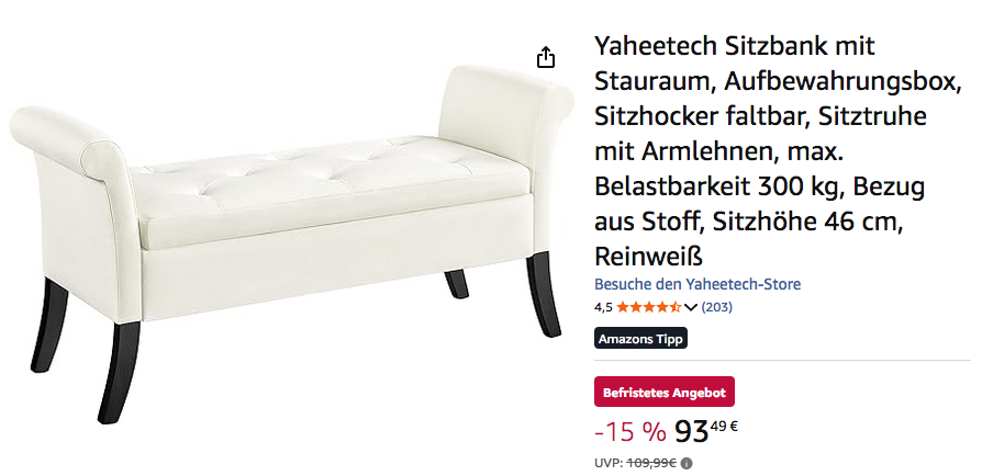 Amazon Kunden haben diese stilvolle Sitzbank/Aufbewahrungsbox mit 4,5 Sternen benotet (203 Bewertungen).