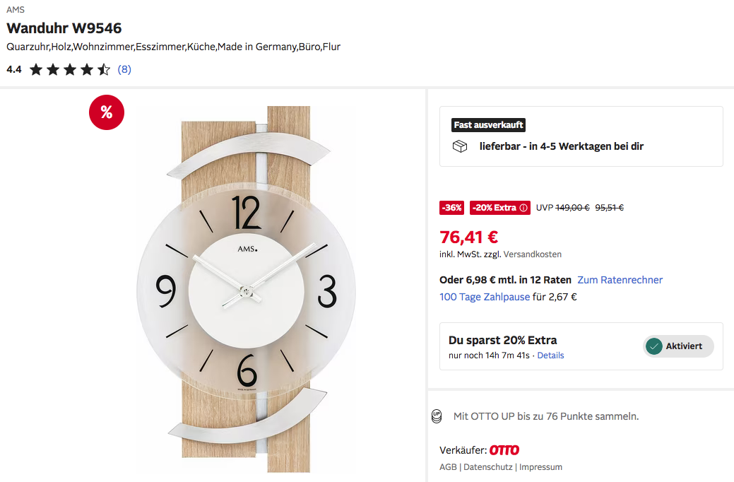 OTTO Kunden haben diese ansprechende Wanduhr mit 4,4 Sternen benotet (8 Bewertungen).