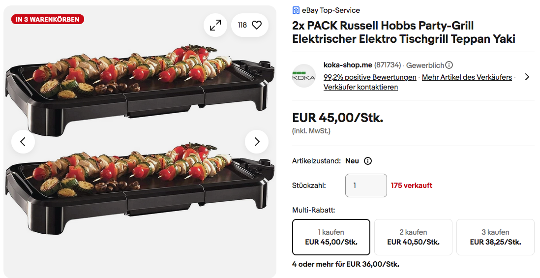 Koka-shop.me bietet aktuell bei eBay den 2x PACK Russell Hobbs 19800-56 Classics Teppan-Yaki Tischgrill NEU&OVP für 45€ inkl. Versand an, solange der Vorrat reicht.