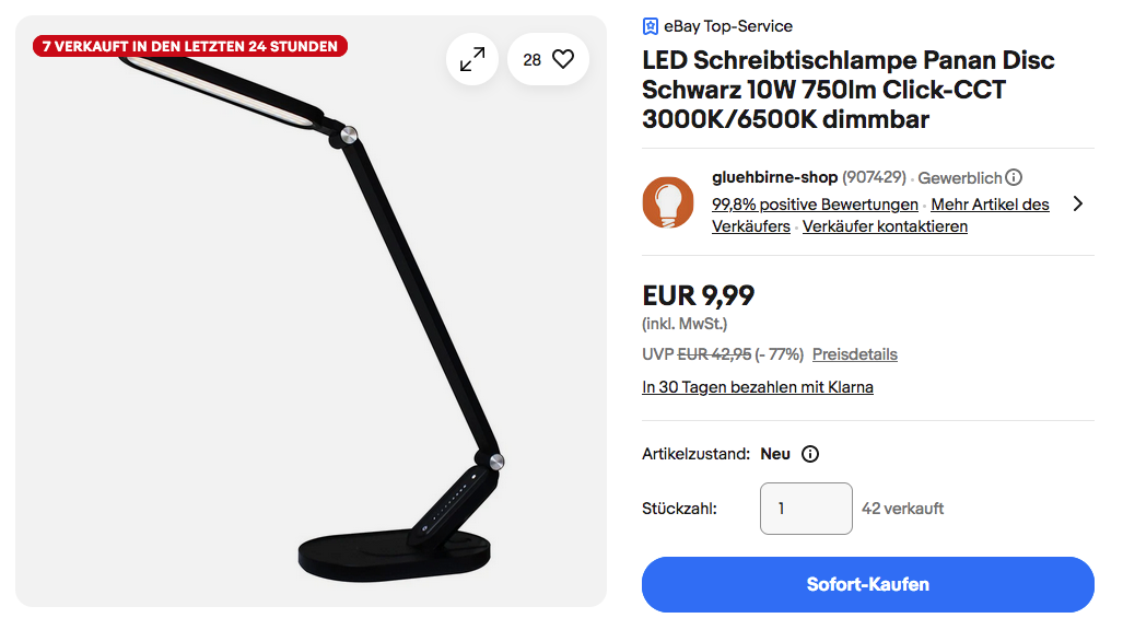 Gluehbirne-shop bietet aktuell bei eBay die Ledvance LED Schreibtischlampe Panan Disc Schwarz NEU&OVP für 9,99€ inkl. Versand an, solange der Vorrat reicht.