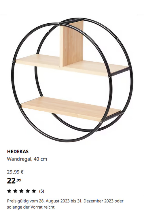 HEDEKAS Wandregal, rund/Bambus, 40 cmAngebot gilt bis 31. Dezember 2023 bei IKEA Frankfurt, gilt nicht für einen Kauf über Click & Collect und solange der Vorrat reicht.