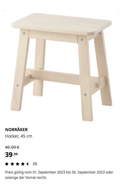 NORRÅKER Hocker, Birke, 45 cm SitzhöheAngebot gilt bis 30. September 2023 bei IKEA Hamburg-Moorfleet, gilt nicht für einen Kauf über Click & Collect und solange der Vorrat reicht.