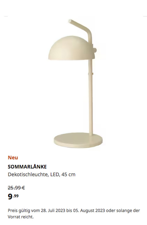 SOMMARLÅNKE Dekotischleuchte, LED, beige/batteriebetrieben für draußen, 45 cmAngebot gilt bis 05. August 2023 bei IKEA Hamburg-Schnelsen, gilt nicht für einen Kauf über Click & Collect und solange der Vorrat reicht.