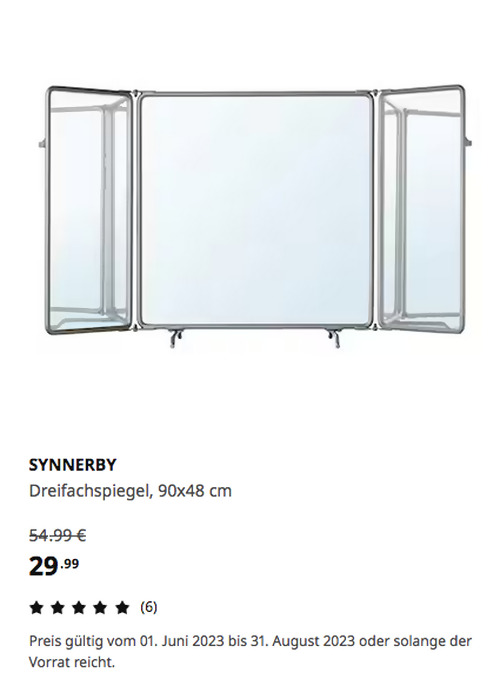 SYNNERBY Dreifachspiegel, grau, 90x48 cmAngebot gilt bis 31. August 2023 bei IKEA Ludwigsburg, gilt nicht für einen Kauf über Click & Collect und solange der Vorrat reicht.