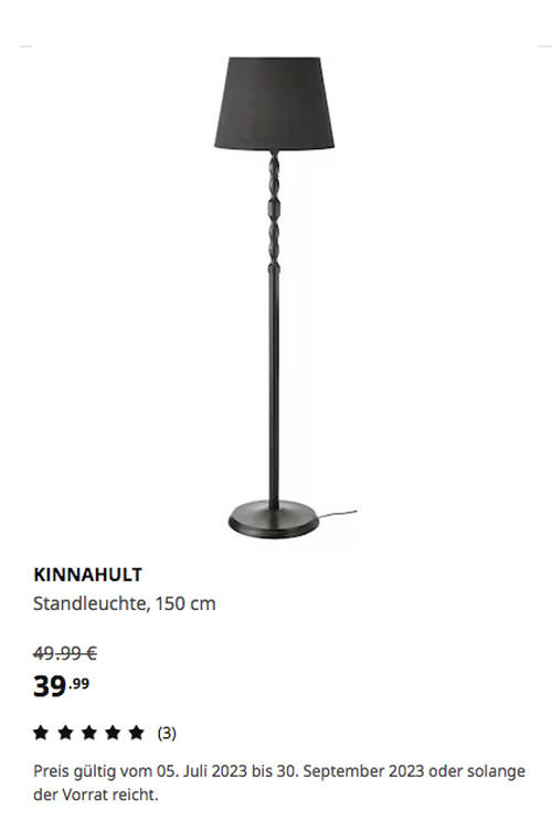 KINNAHULT Standleuchte, schwarz Esche/schwarz, 150 cmAngebot gilt bis 30. September 2023 bei IKEA Freiburg, gilt nicht für einen Kauf über Click & Collect und solange der Vorrat reicht