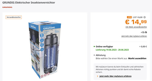 SATURN Online Shop bietet aktuell den GRUNDIG 47634 Insektenvernichter für 14,99€ inkl. Versand an, solange der Vorrat reicht. Einsatzbereich: Innenraum Eingangsspannung: 230 VAC Maximale Leistung: 4 Watt Höhe: 300 mm Kabellänge: 1 m