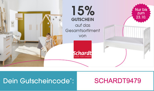 Babymarkt.de bietet bis zum 23.10.22 mit dem Gutscheincode: SCHARDT9479 (wird im Warenkorb eingeben) einen 15% Rabatt auf ausgewähltes Sortiment von Schardt an, solange der Vorrat reicht.Beispiel Warenkorb: Das Schardt 70 x 140 cm Hausbett Venice naturbelassen, kostet heute als Tagesangebot nur noch 239,99€, bekommt man im Laufe dieser Aktion für 203,99€ inkl. Versand. Liegefläche: Breite x Länge 70 x 140 cm Maße: Breite x Länge x Höhe 77 x 144 x 173 cm Material Gitterstäbe: Buche massiv, geölt Material Kopf und Fußteil: Spanplatte, melaminbeschichtet 3-fach verstellbares Rost 3 Schlupfsprossen Made in Germany Im Lieferumfang enthalten: Hausbett, Lattenrost
