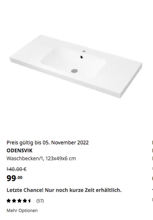 IKEA ODENSVIK Waschbecken/1, 123x49x6 cmAngebot gilt bis 05. November 2022 bei IKEA Hamburg-Schnelsen, gilt nicht für einen Kauf über Click & Collect und solange der Vorrat reicht.