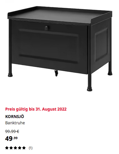 IKEA KORNSJÖ Banktruhe, schwarz, 70x47x51 cm Angebot gilt bis 31. August 2022 bei IKEA Mannheim, gilt nicht für einen Kauf über Click & Collect und solange der Vorrat reicht.