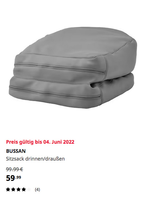 IKEA BUSSAN Sitzsack drinnen/draußen, grauAngebot gilt bis 04. Juni 2022 bei IKEA Hamburg-Schnelsen, gilt nicht für einen Kauf über Click & Collect und solange der Vorrat reicht.