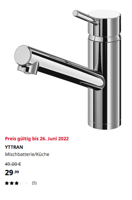IKEA YTTRAN Mischbatterie/Küche, verchromtAngebot gilt bis 26. Juni 2022 bei IKEA Sindelfingen, gilt nicht für einen Kauf über Click & Collect und solange der Vorrat reicht