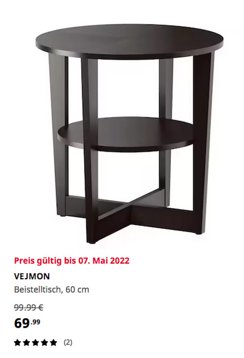 IKEA VEJMON Beistelltisch, schwarzbraun, 60 cm, EschenfurnierAngebot gilt bis 07. Mai 2022 bei IKEA Sindelfingen, gilt nicht für einen Kauf über Click & Collect und solange der Vorrat reicht.