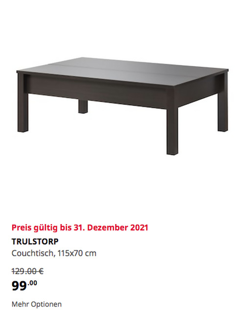 IKEA TRULSTORP Couchtisch, schwarzbraun, 115x70 cmAngebot gültig bis 31. Dezember 2021 bei IKEA Oldenburg, gilt nicht für einen Kauf über Click & Collect und solange der Vorrat