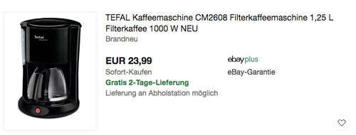 Favorio bietet aktuell bei eBay die TEFAL CM2608 Filterkaffeemaschine NEU&OVP für 23,99€ inkl. Versand an, solange der Vorrat reicht. Kanne: Glas Fassungsvermögen Kanne: 1,25 Liter Wasserstand: Fenster mit Skala Ein/Aus-Schalter: Beleuchtet Warmhaltefunktion Abnehmbarer Filterhalter Automatische Abschaltung 1000 Watt Diese solide Filter-Maschine ohne Schnickschnack wurde von Amazon Kunden mit 4,1 Sternen bewertet (5 Sternebewertungen).