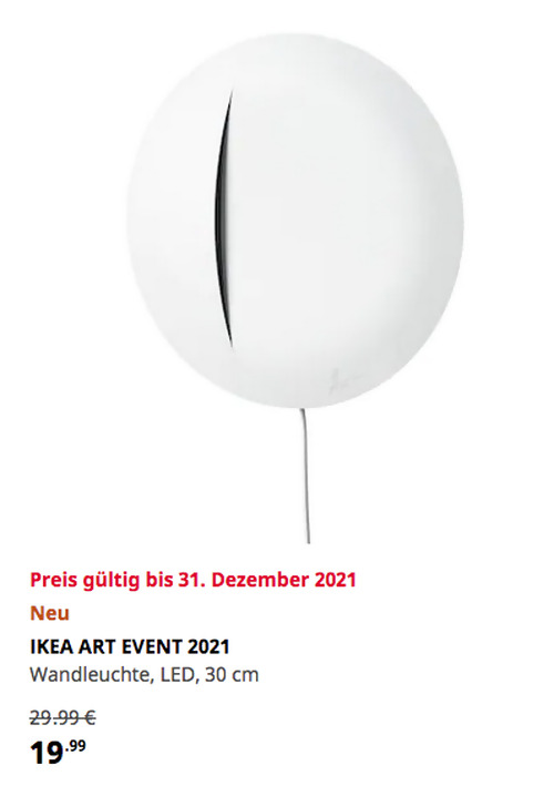 IKEA ART EVENT 2021 Wandleuchte, LED, weiß, 30 cmAngebot gültig bis 31. Dezember 2021 bei IKEA Bielefeld, gilt nicht für einen Kauf über Click & Collect und solange der Vorrat reicht.